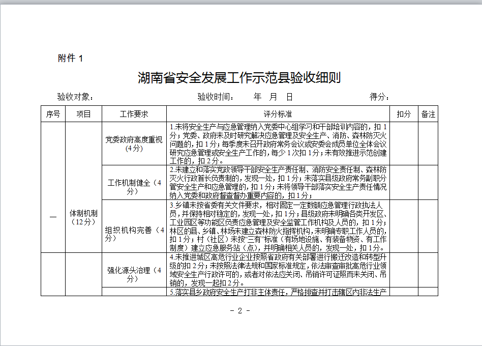 湖南省安全生产委员会办公室关于印发《湖南省安全发展工作示范创建验收细则》的通知
