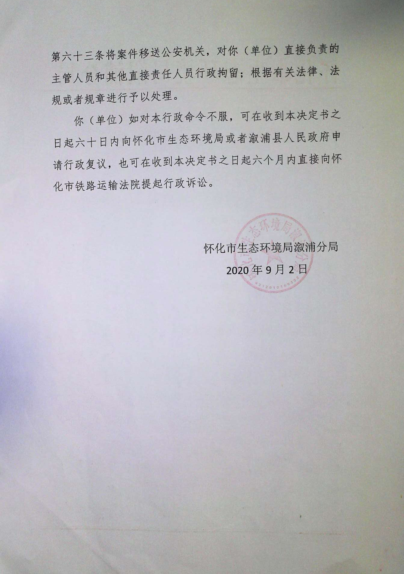 怀化市华兴冶炼厂责令改正违法行为决定书