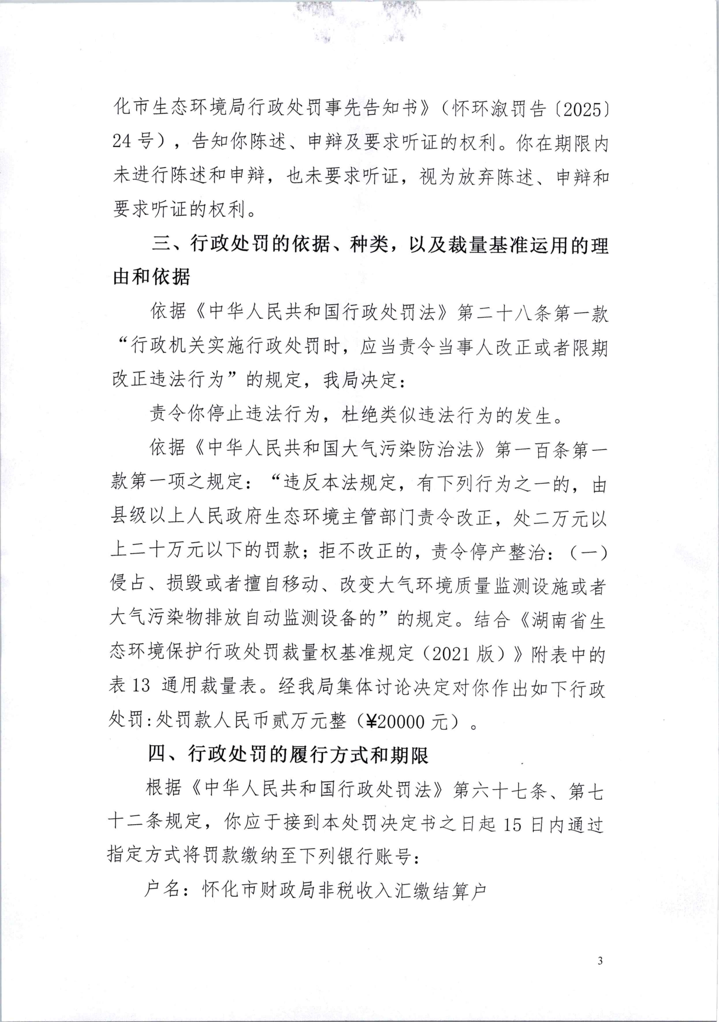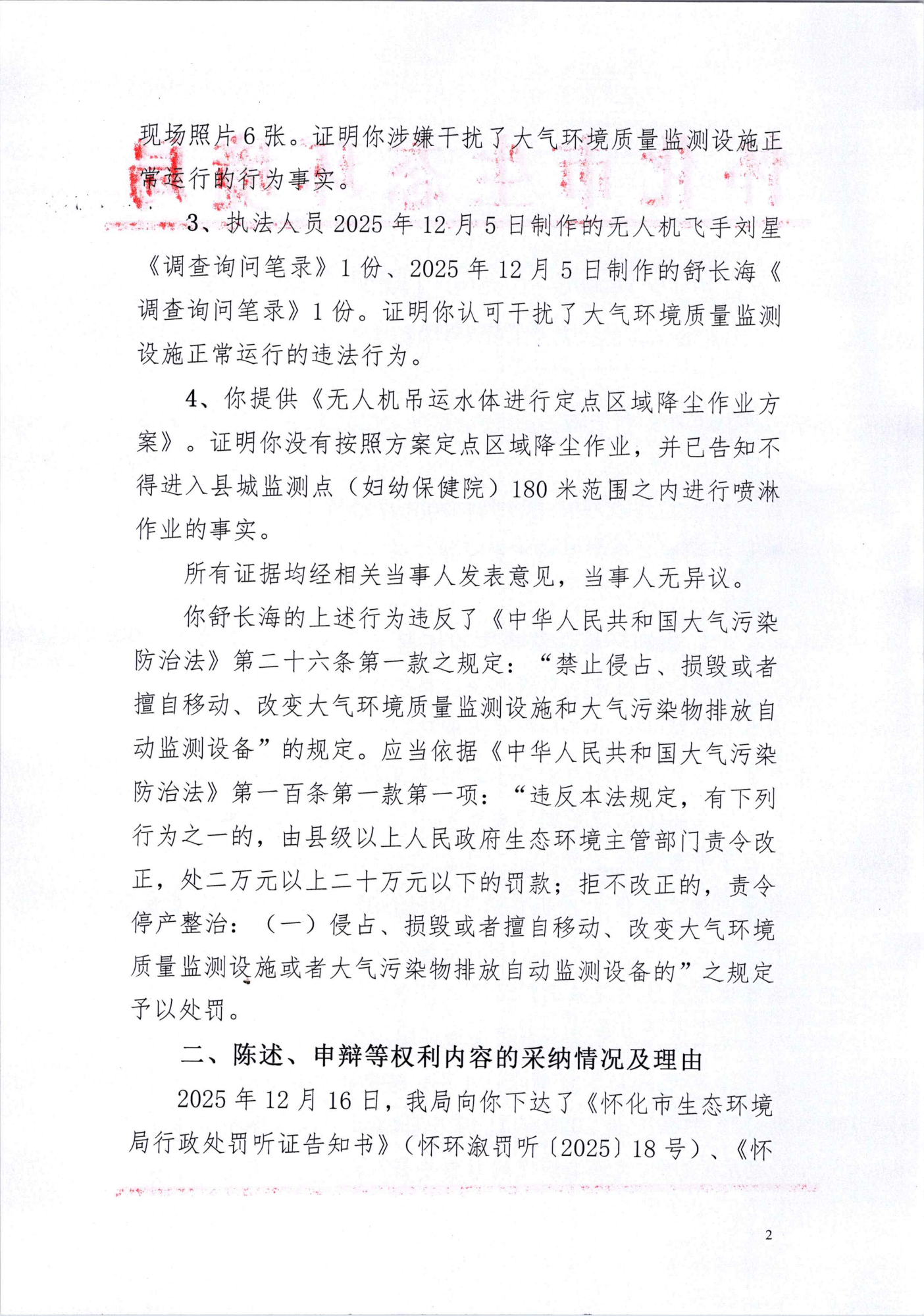 舒长海:违反《中华人民共和国大气污染防治法》行政处罚决定书