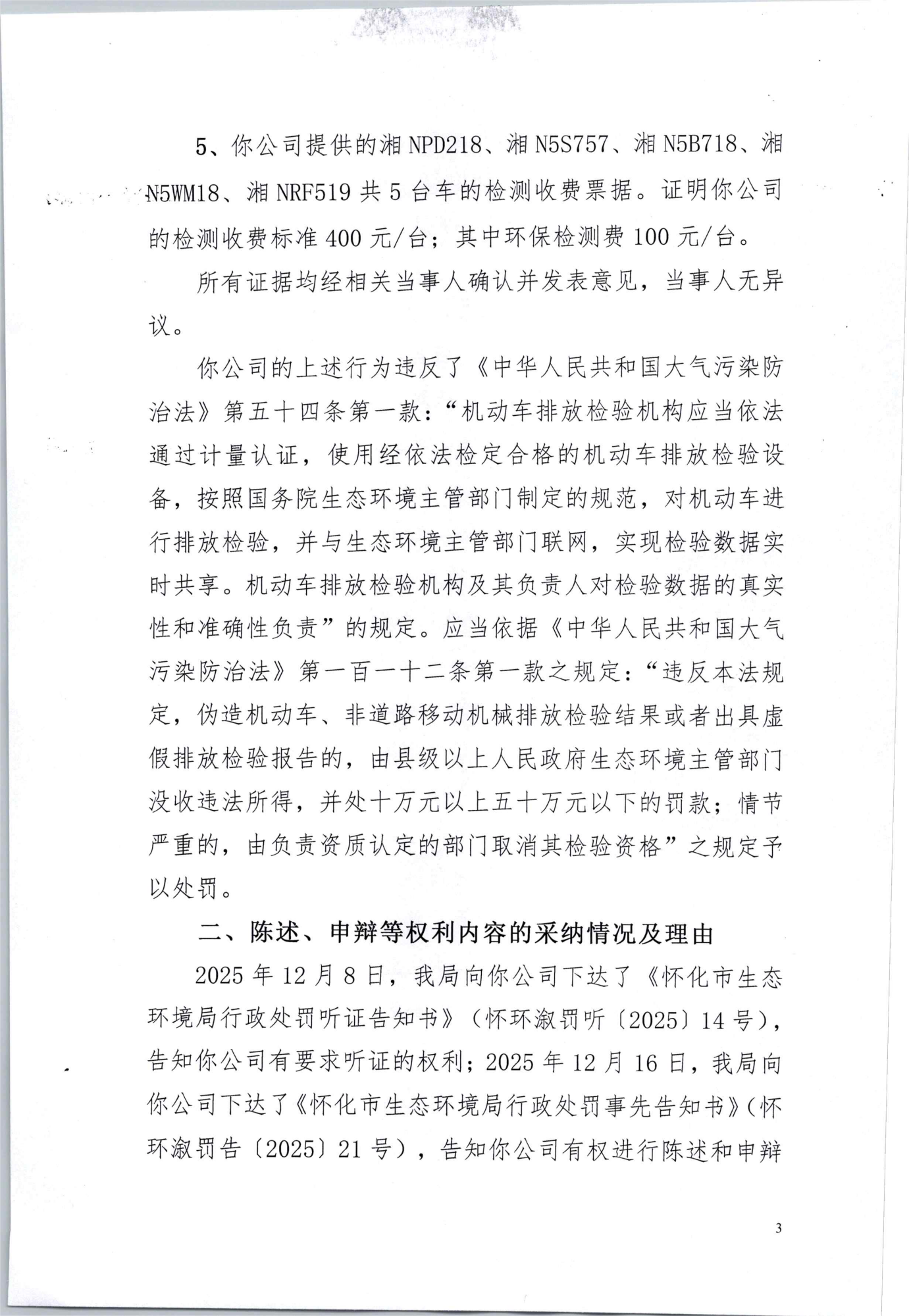 溆浦县城南机动车检测有限公司:违反《中华人民共和国大气污染防治法》行政处罚决定书