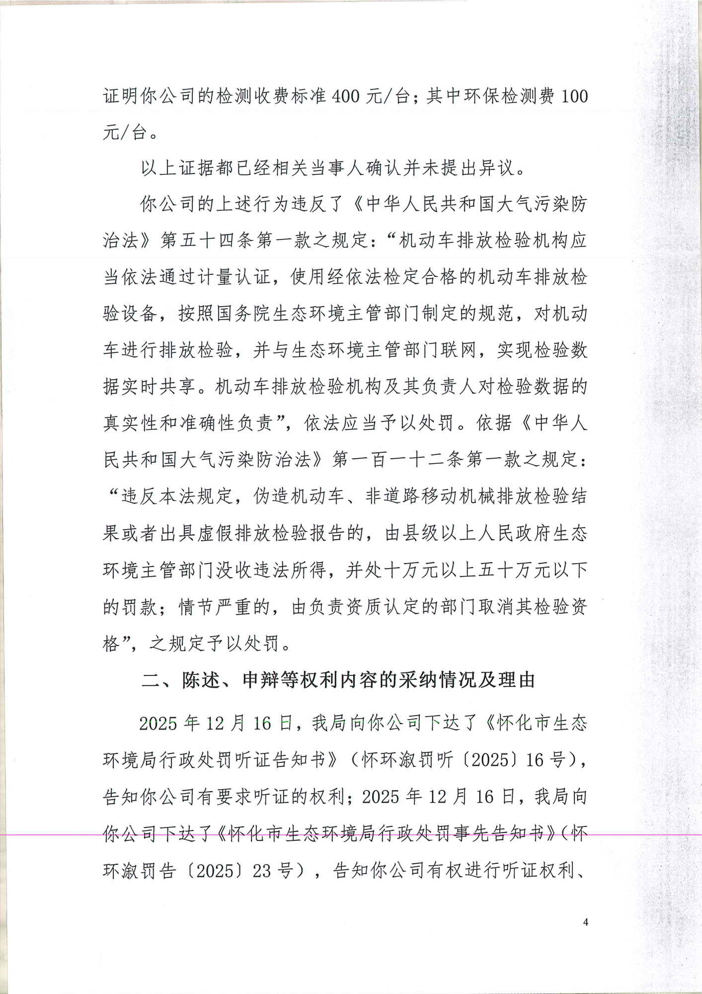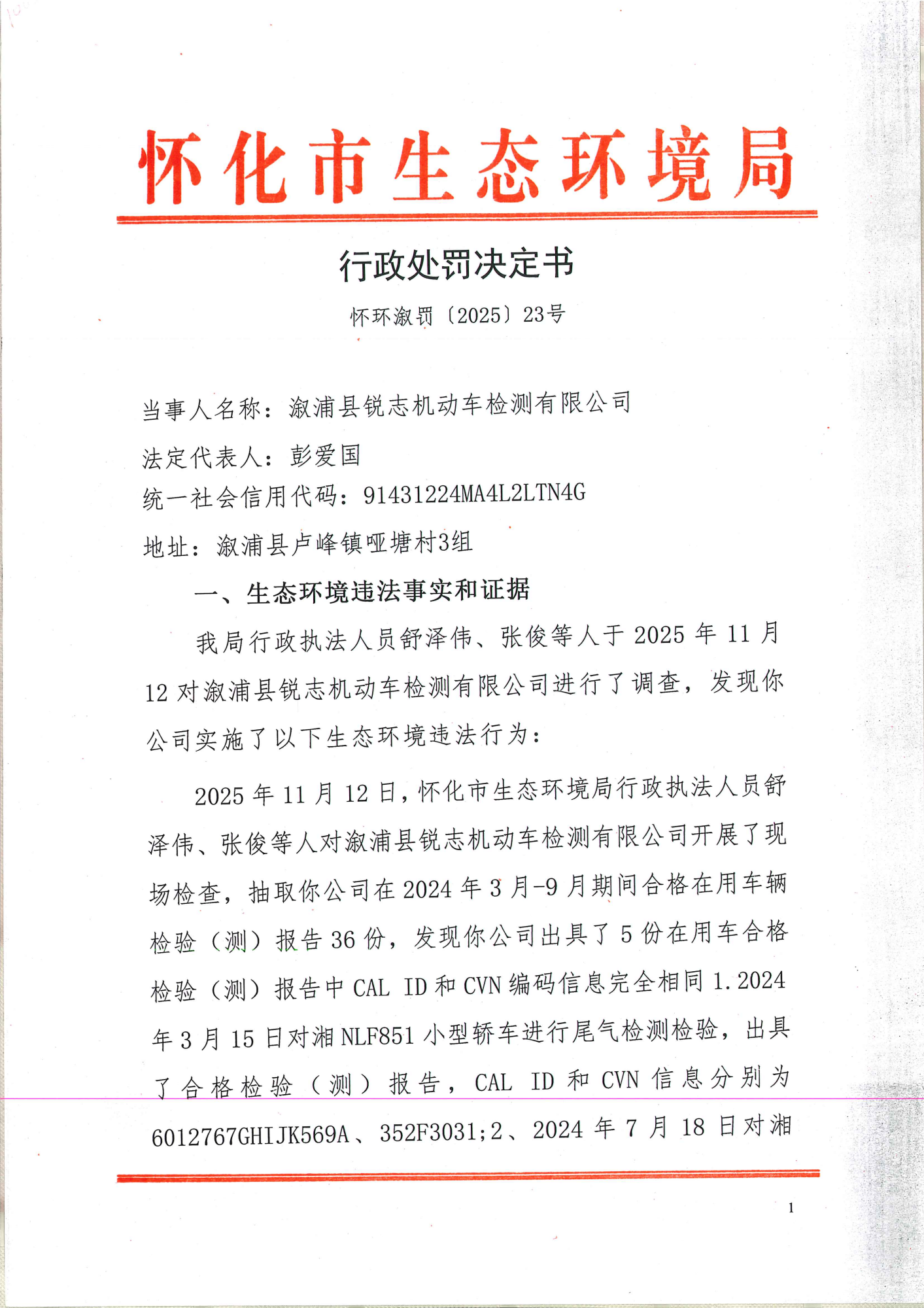 溆浦县锐志机动车检测有限公司:违反《中华人民共和国大气污染防治法》行政处罚决定书