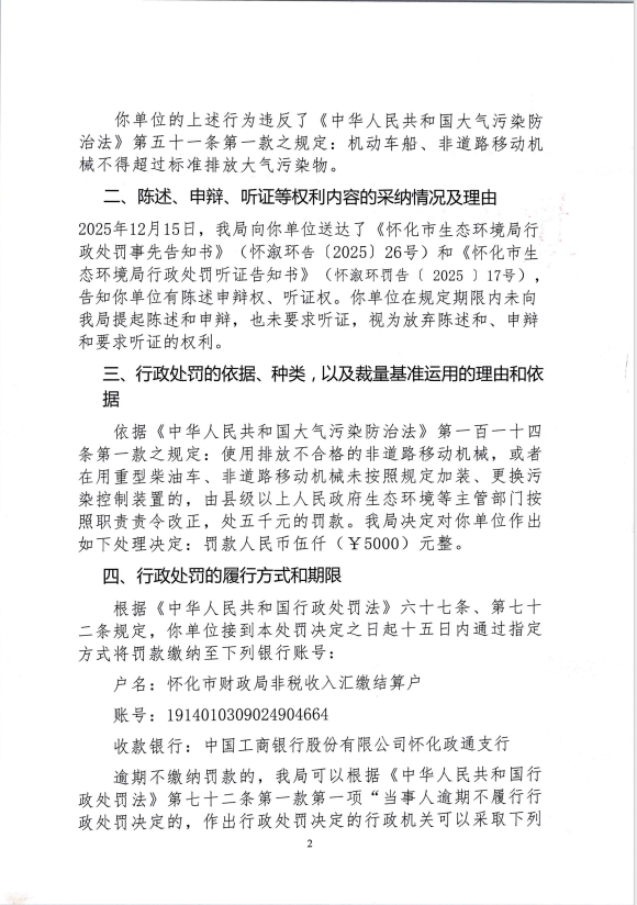 彭湘源:违反《中华人民共和国大气污染防治法》行政处罚决定书