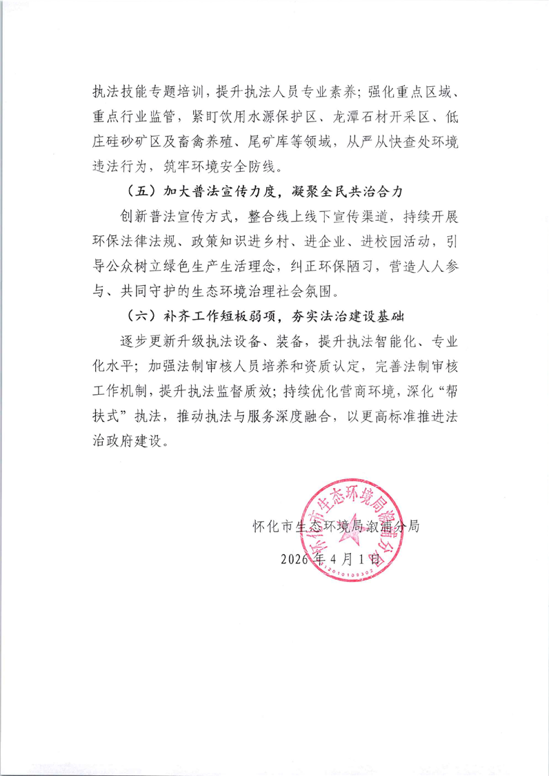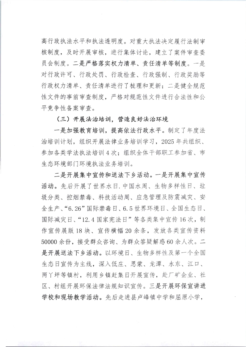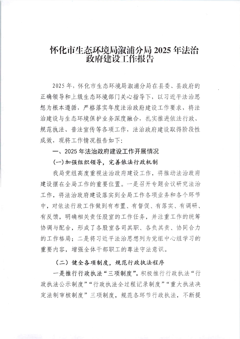 怀化市生态环境局溆浦分局法治政府建设工作报告