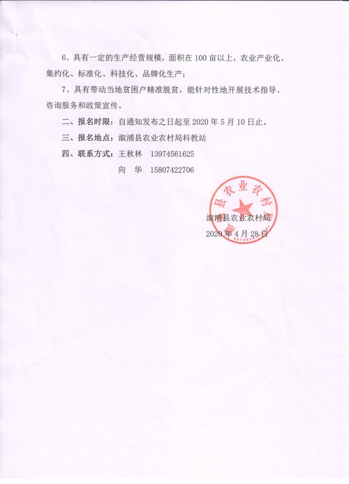 关于拟建2020年溆浦县农业技术创新示范基地的通知