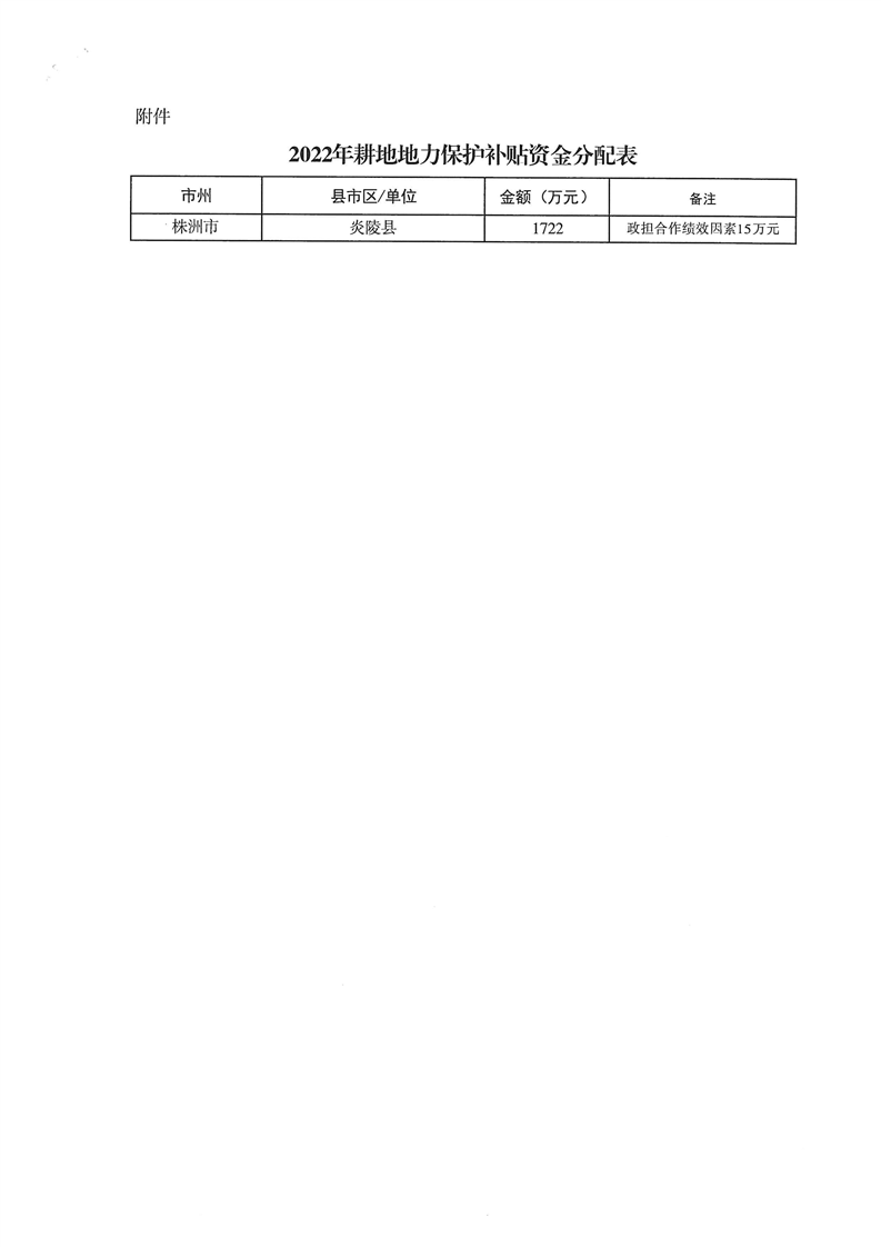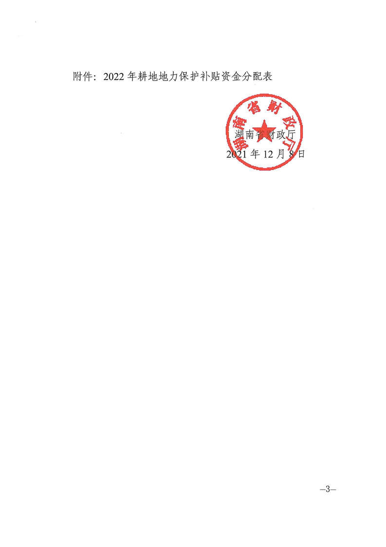 湖南省财政厅关于提前下达2022年耕地地力保护补贴资金