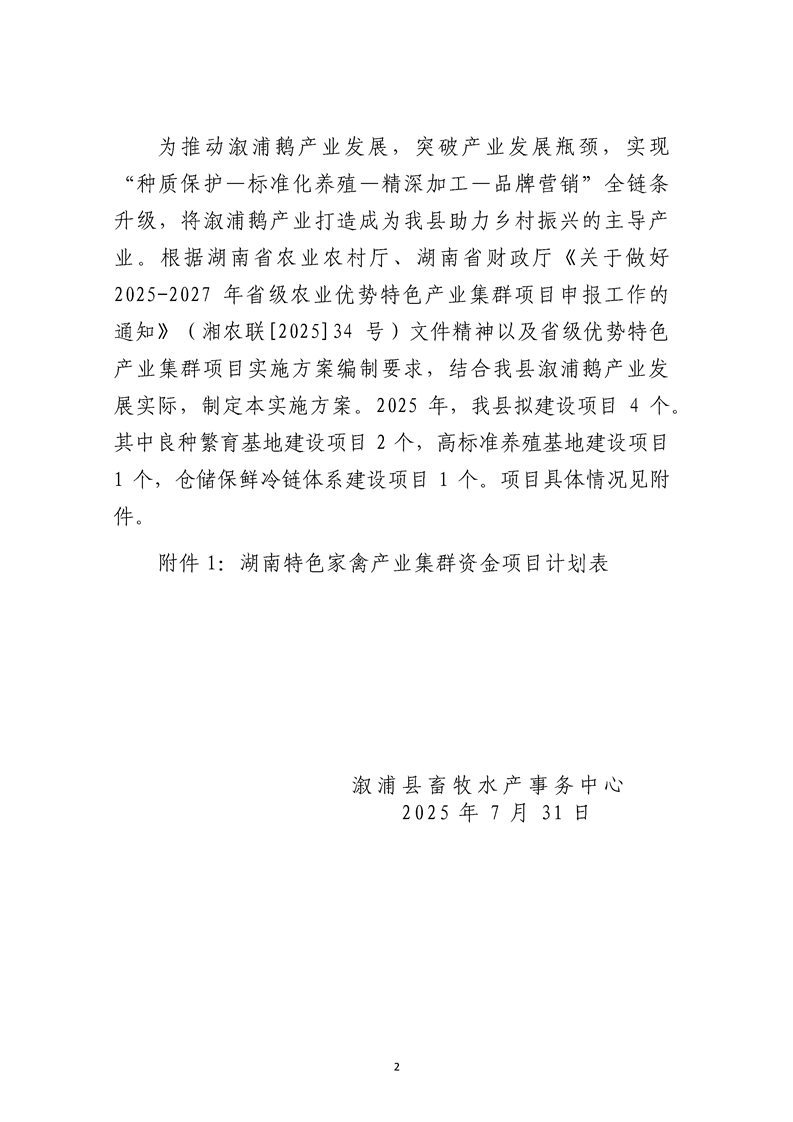 溆浦县2025年度省级优势特色溆浦鹅产业集群项目