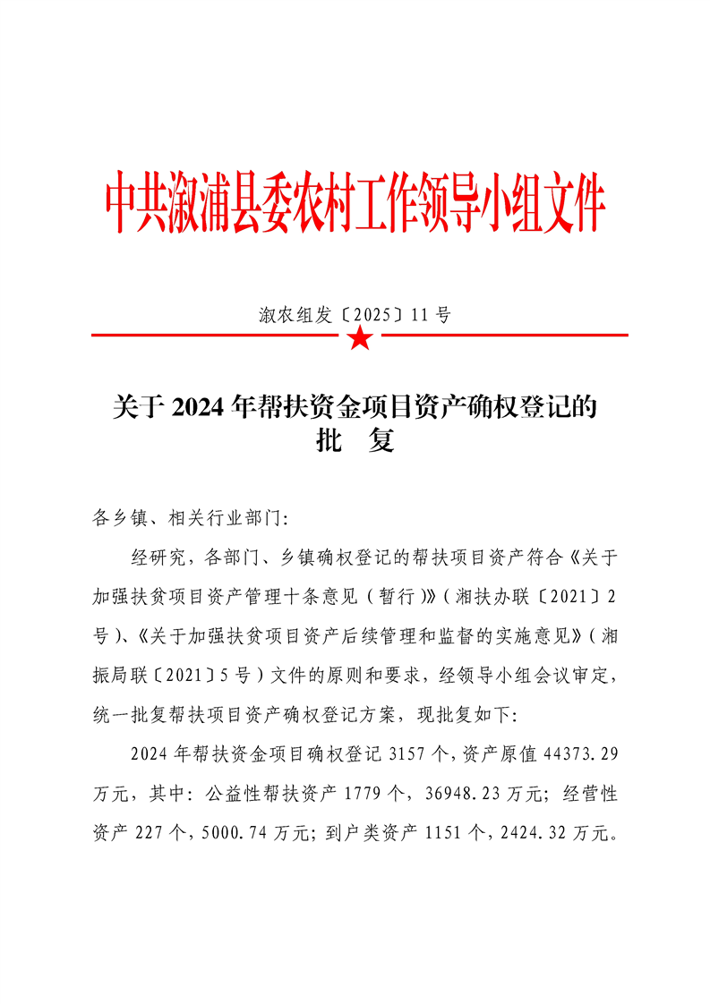 关于1024年帮扶资金项目资产确权登记的批复