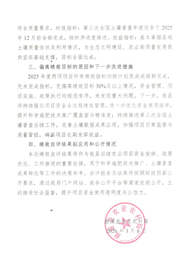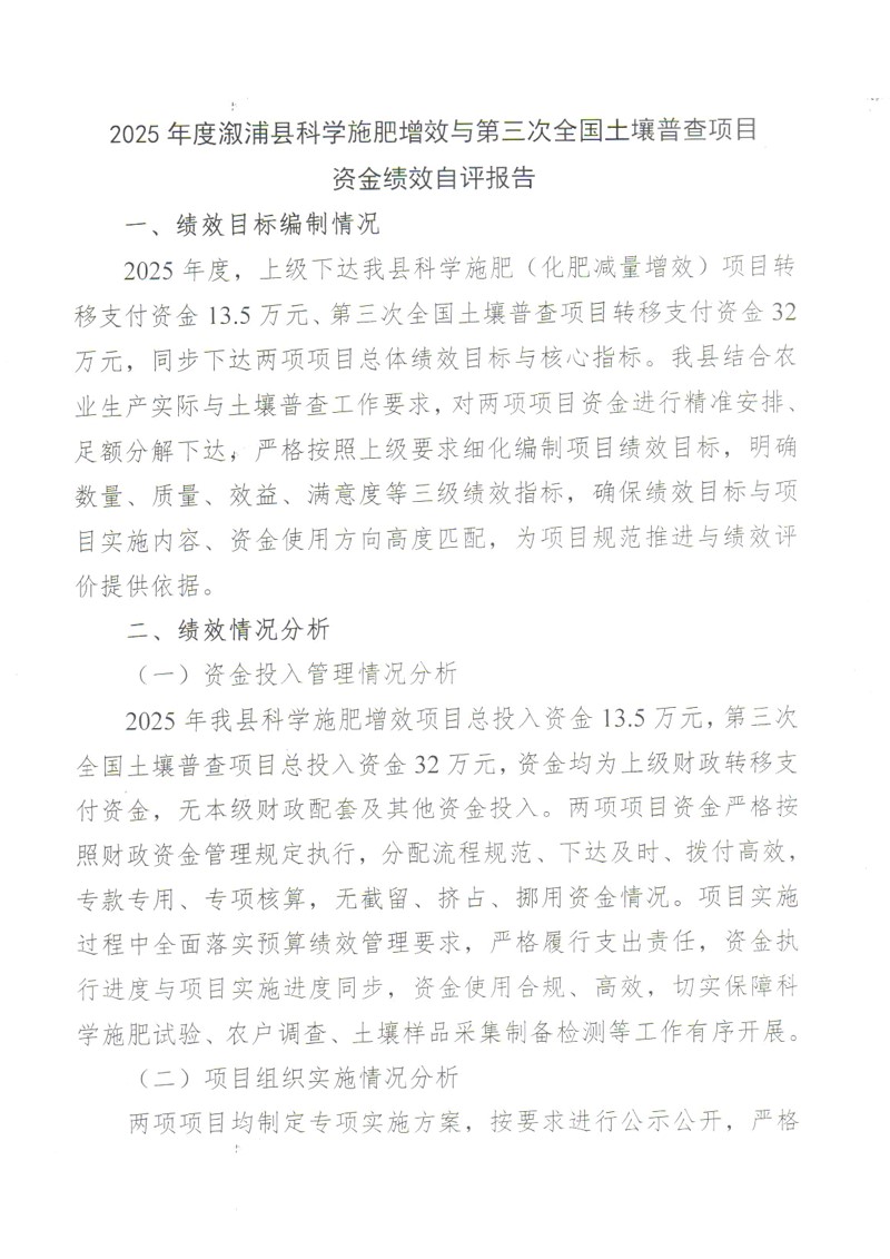 2025年度溆浦县科学施肥增效与第三次全国土壤普查项目资金绩效自评报告