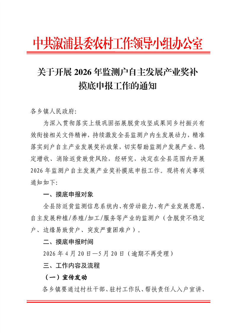 关于开展 2026 年监测户自主发展产业奖补摸底申报工作的通知
