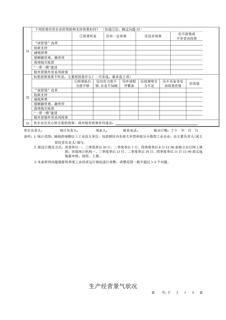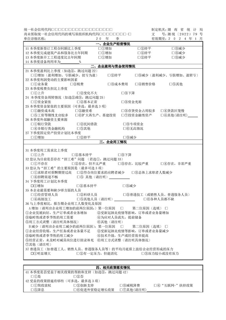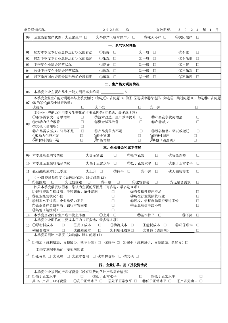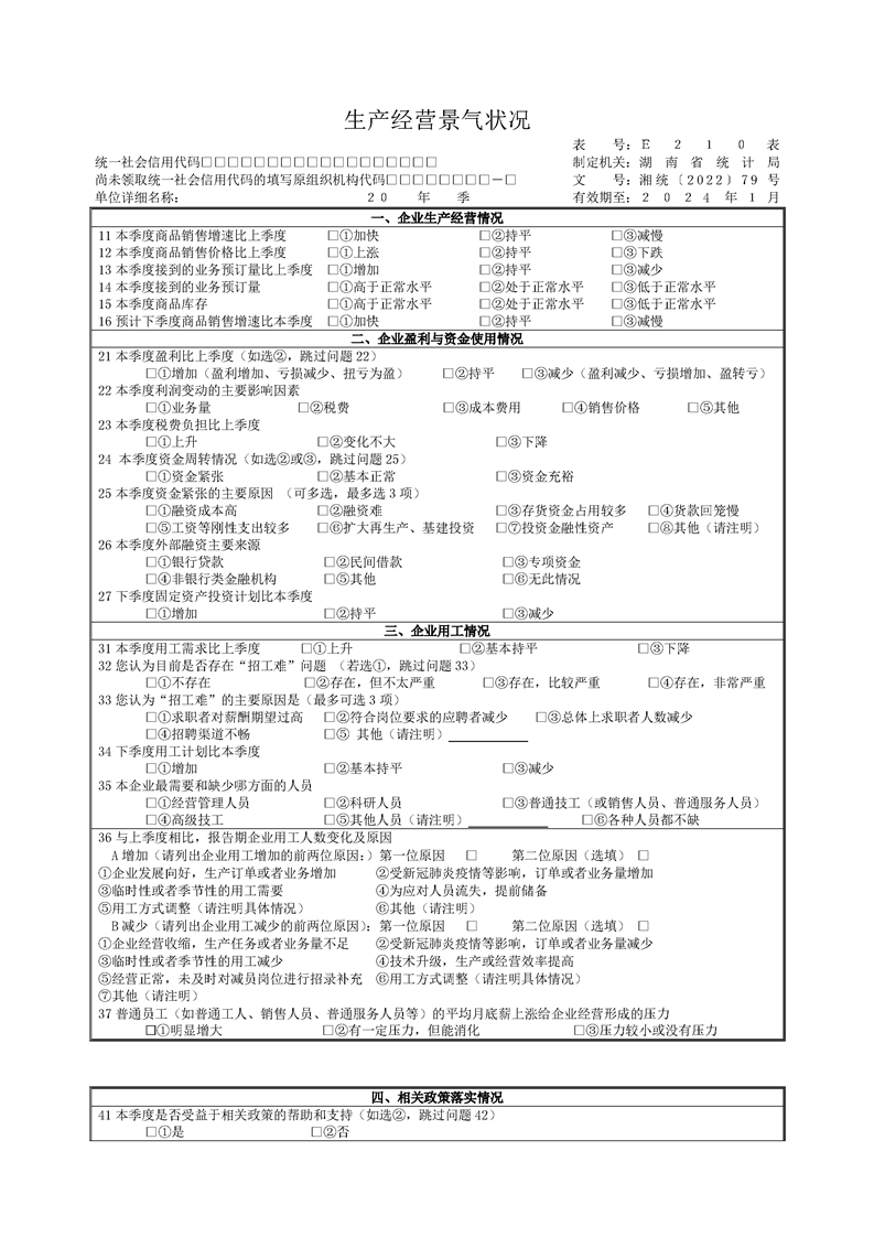 湖南省生产经营景气状况调查报表制度(2023 年定期报表)