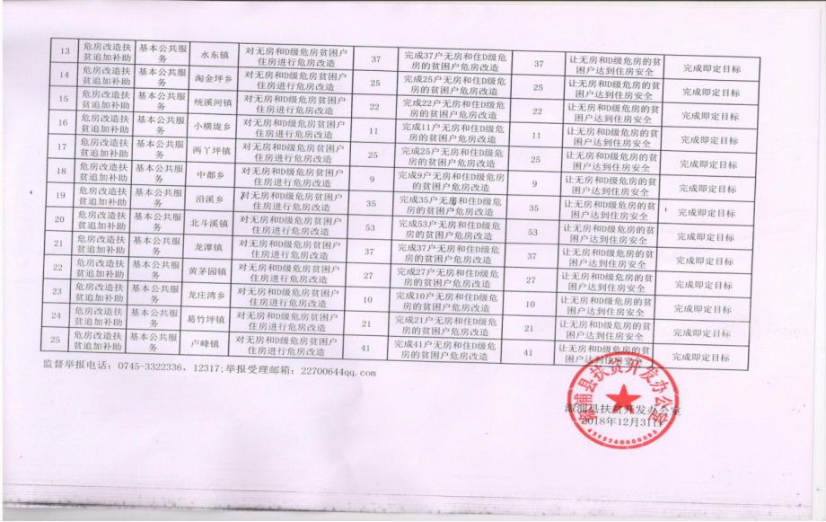 溆浦县2018年度扶贫项目计划完成情况公告