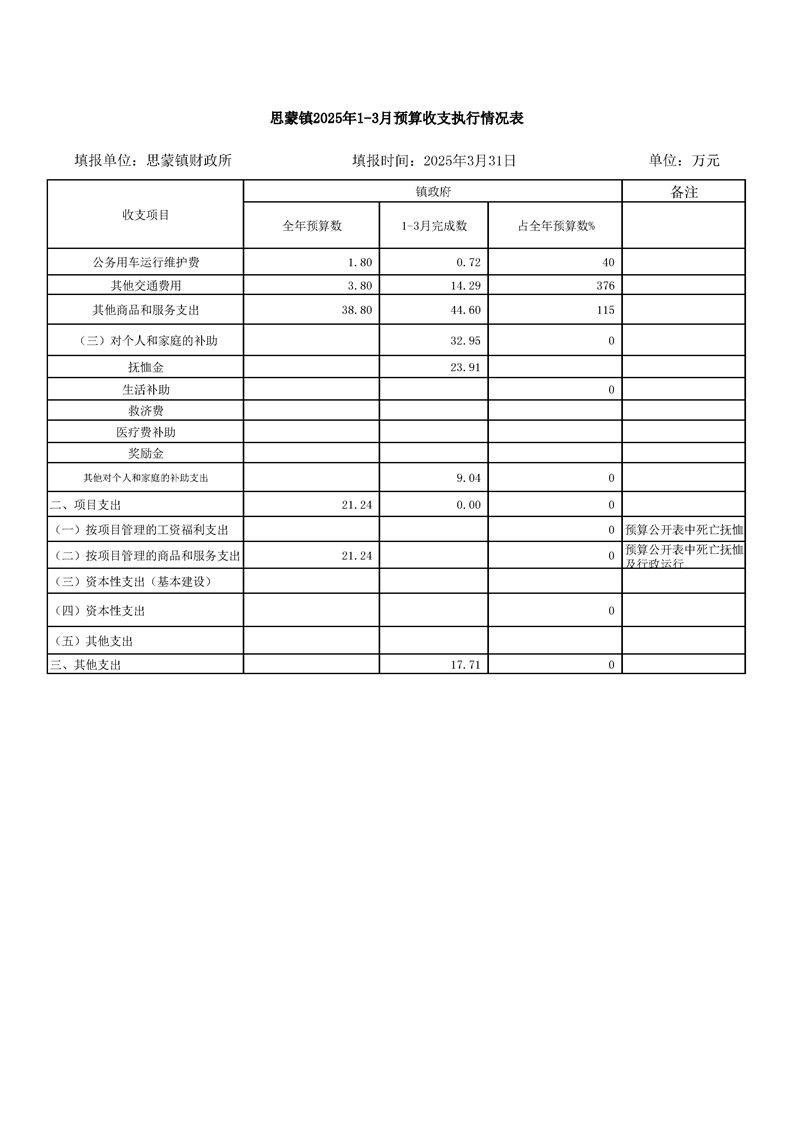 思蒙镇人民政府2025年1-3月预算执行情况分析表