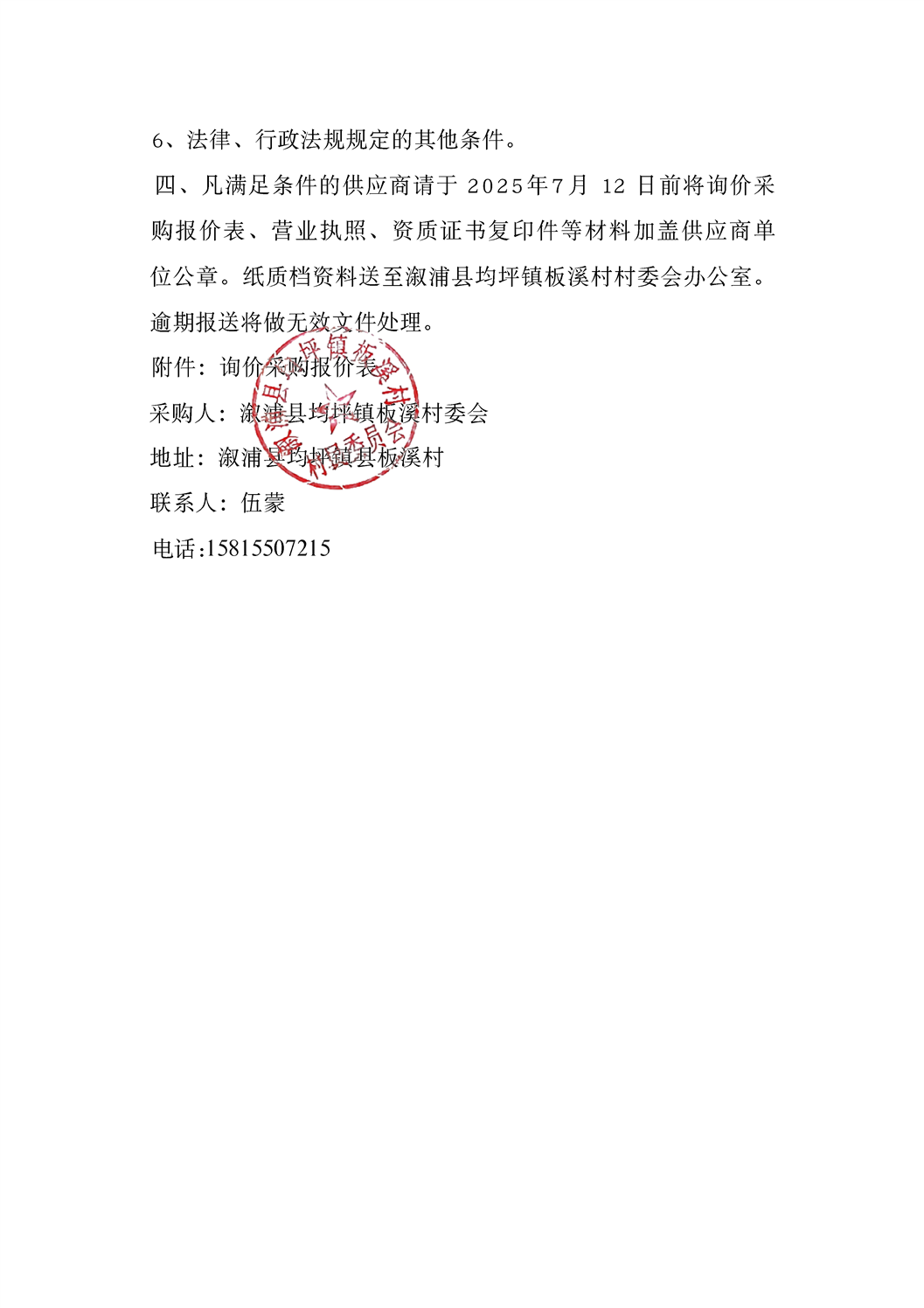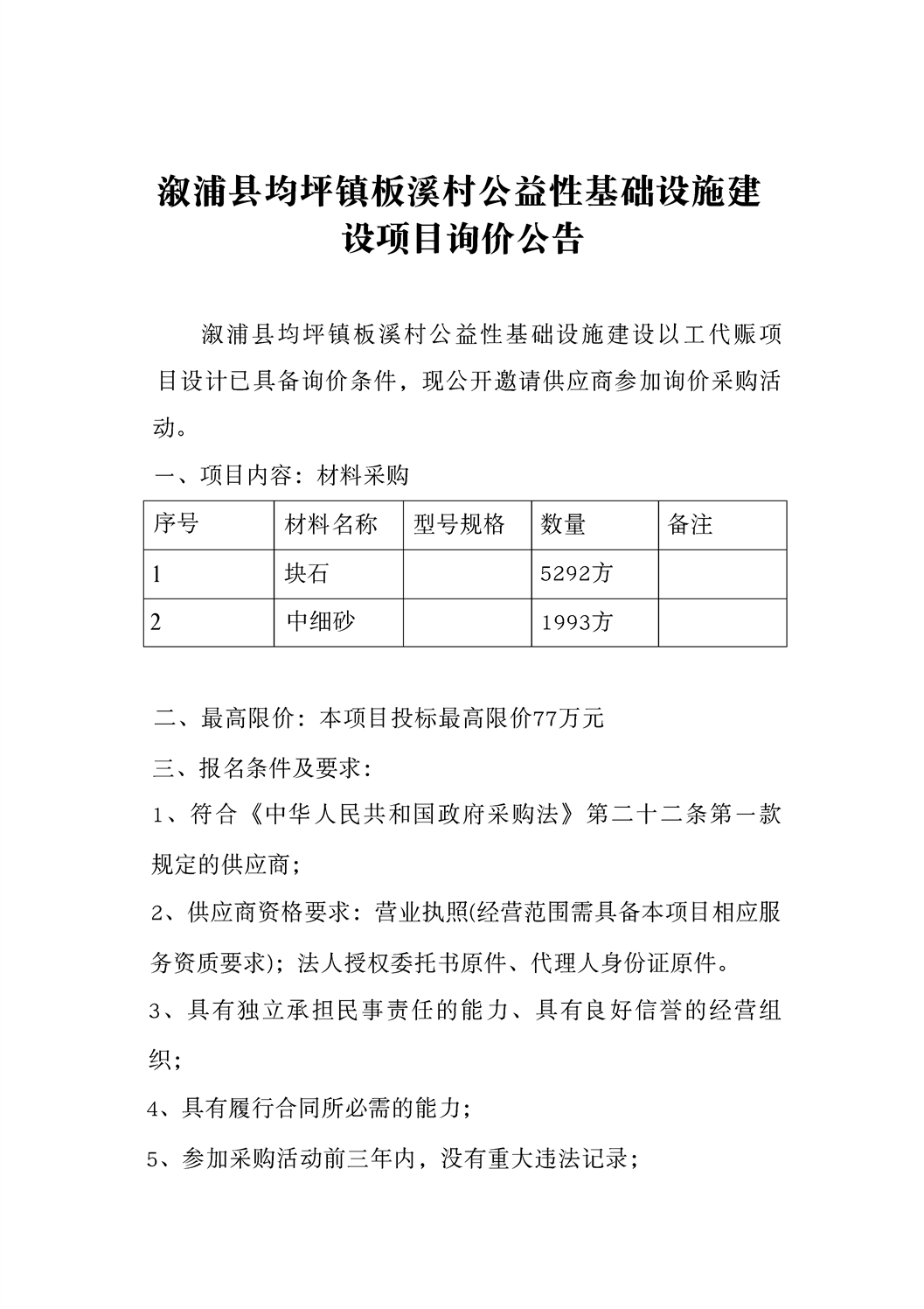 溆浦县均坪镇板溪村公益性基础设施建设项目询价公告
