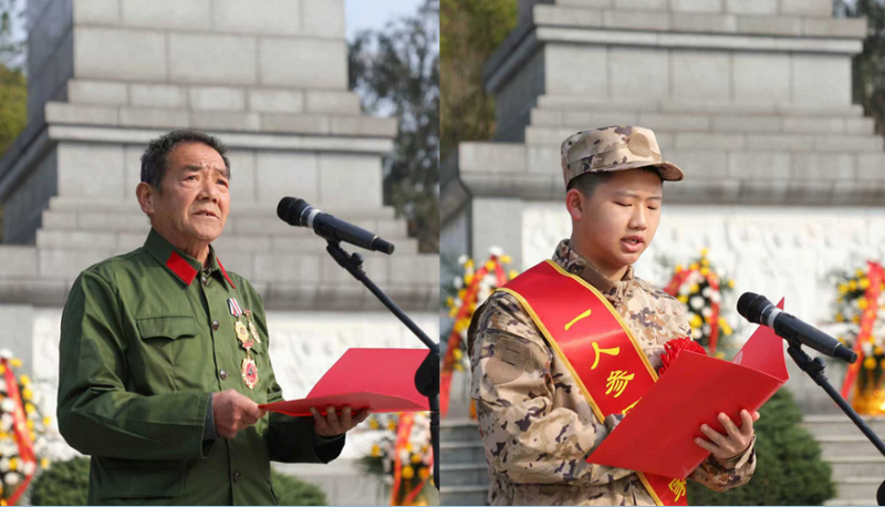 对越自卫反击战老兵舒象富(左)、新兵代表发言(右)
