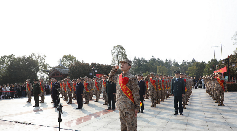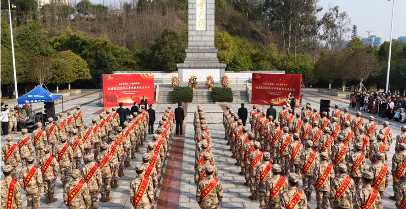现场,新兵班长带领新兵进行了集体宣誓。对越自卫反击战老兵舒象富现场寄语新兵,他结合自身战斗经历,勉励大家牢记幸福生活来之不易,接过保家卫国的接力棒,听党话、练本领、敢牺牲、打胜仗。新兵代表郑重承诺:到部队后绝不退缩、绝不给家乡丢脸、绝不让亲人失望,努力成长为合格军人。