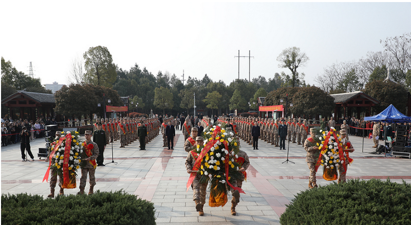 仪式结束后,全体新兵向革命烈士敬献鲜花