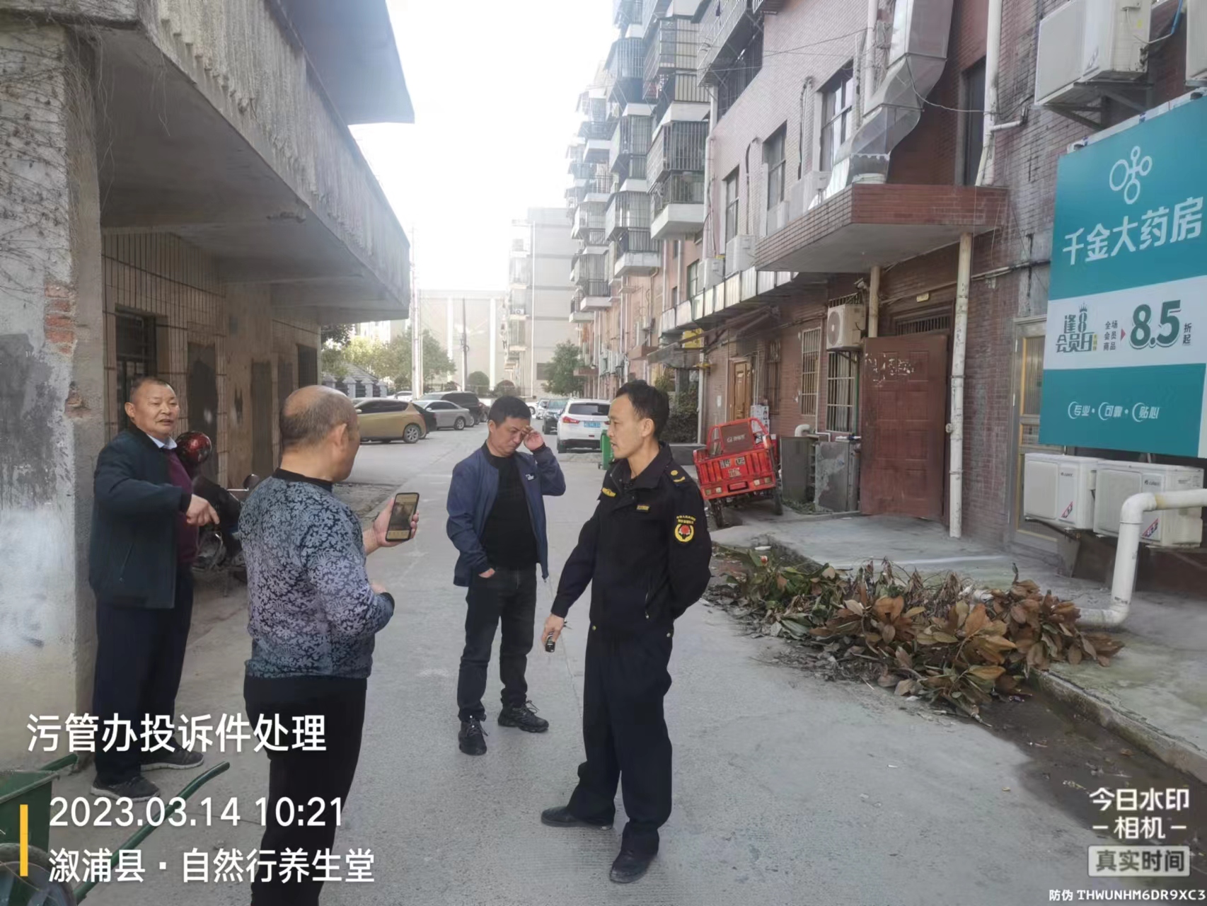 2023年3月14日协同社区入户走访,解决张记海鲜后污水乱排问题