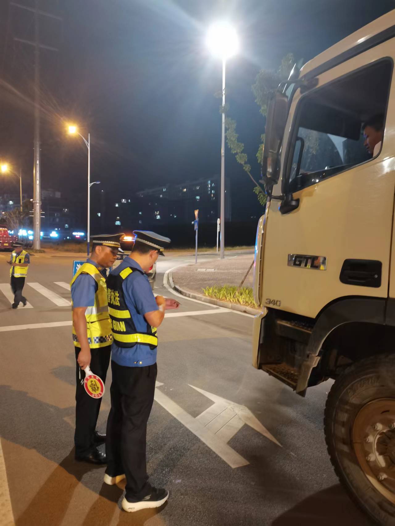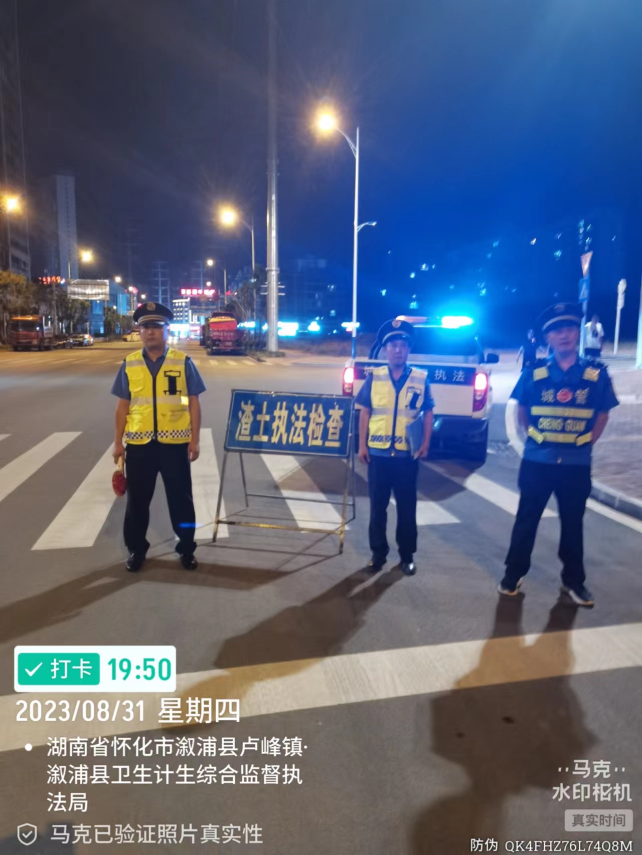 溆浦县城市管理和综合执法局渣土办夜间巡查渣土车辆并进行相关手续检查