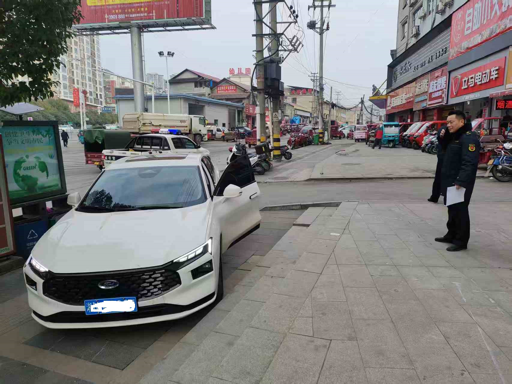 对违规停放在人行道上的车辆进行执法