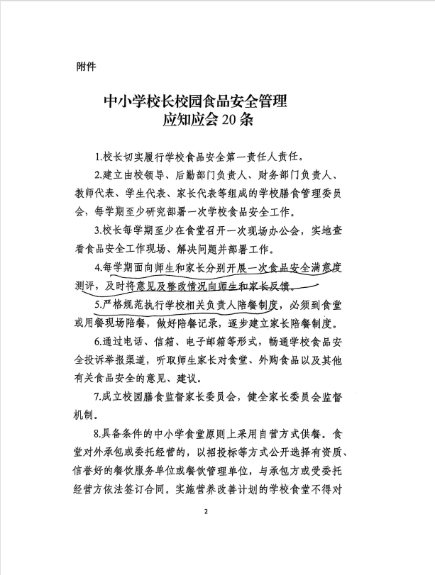 关于印发《中小学校长校园食品安全管理应知应会 20 条》的通知