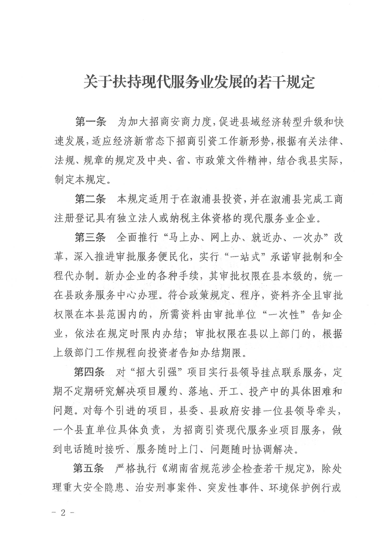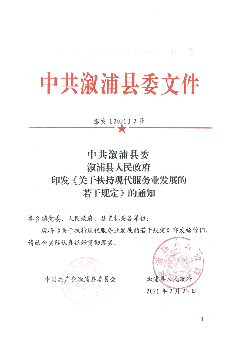 中共溆浦县委 溆浦县人民政府关于印发《关于扶持现代服务业发展的若干规定》的通知