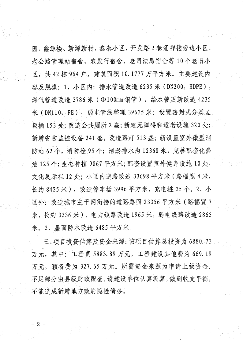 关于溆浦县屈原社区片老旧小区改造项目可行性研究报告的批复
