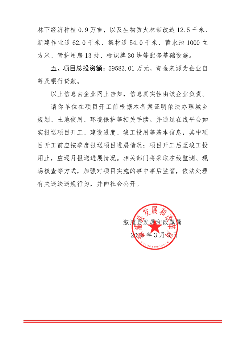 溆浦县国家储备林建设项目(一期)备案证明