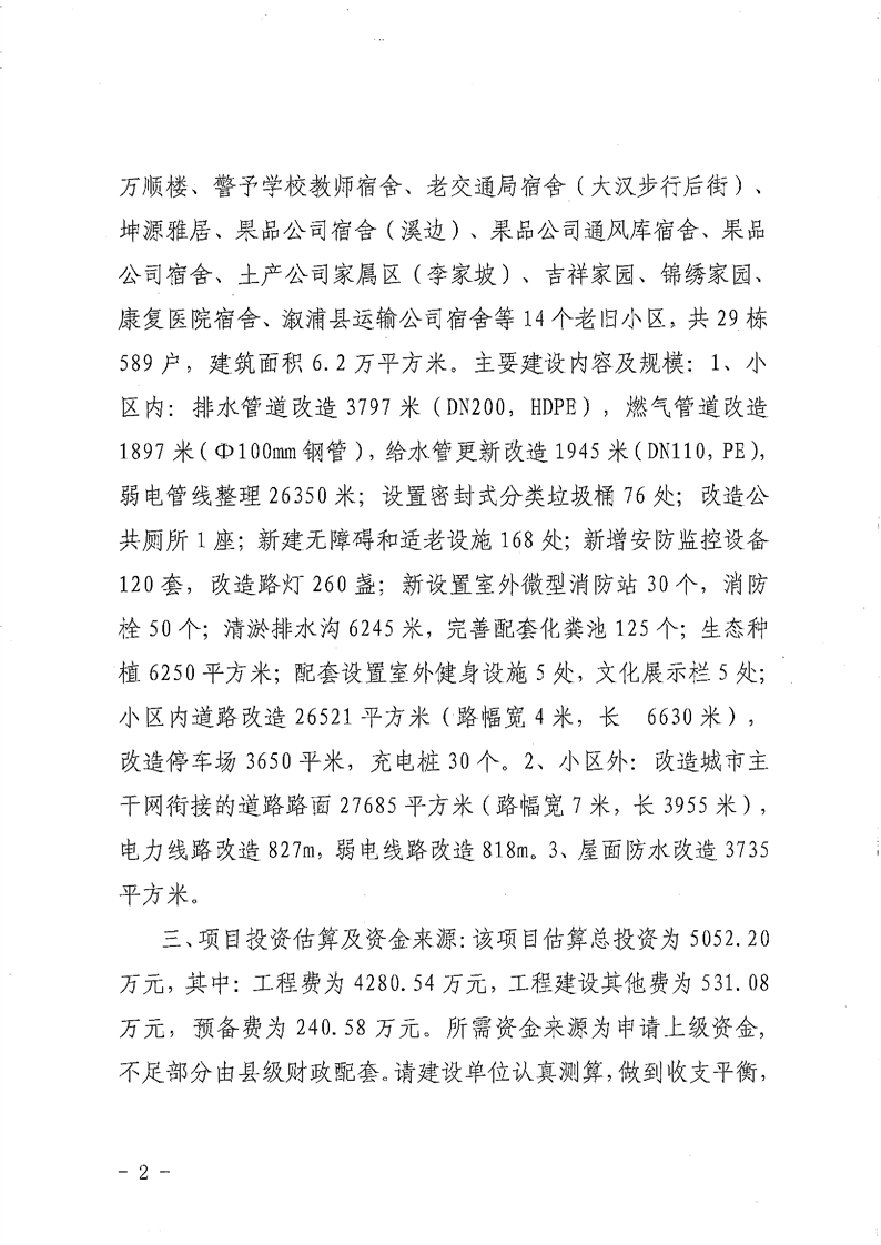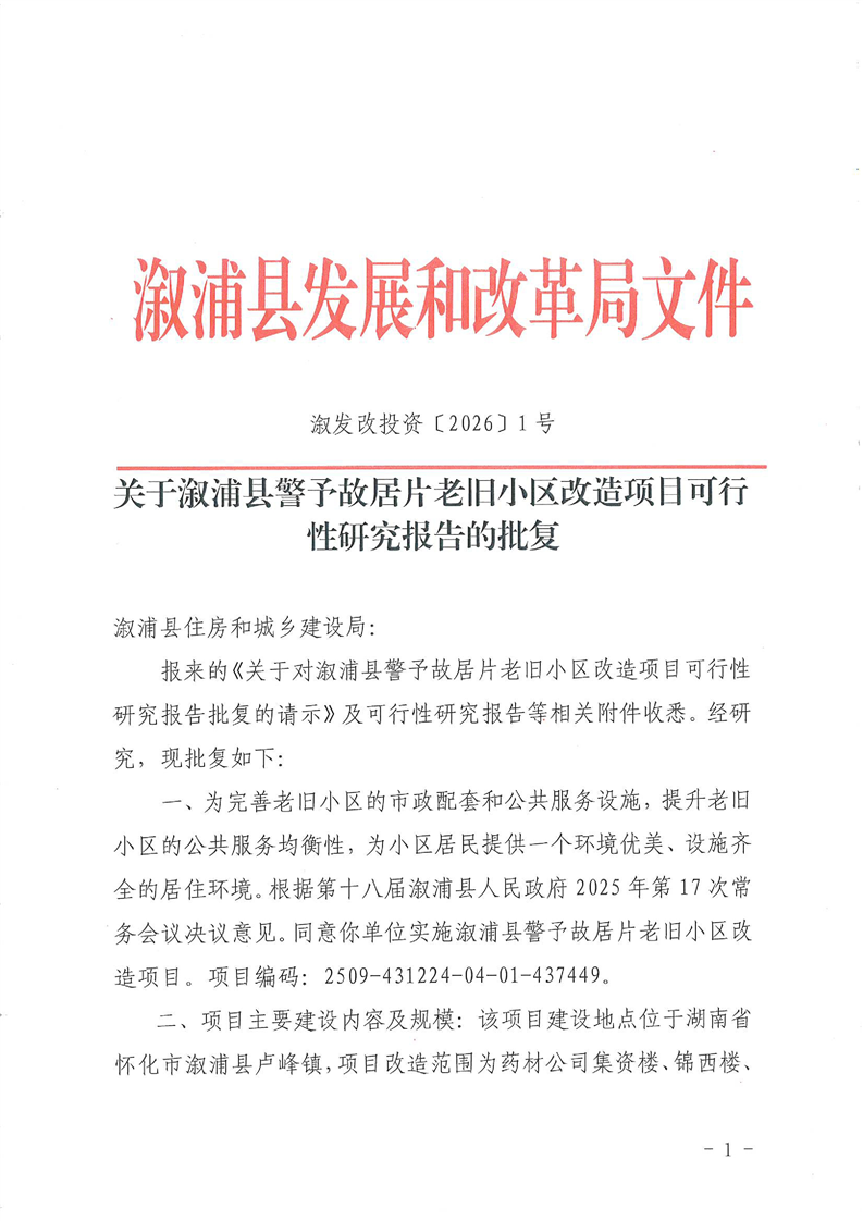 关于溆浦县警予故居片老旧小区改造项目可行性研究报告的批复
