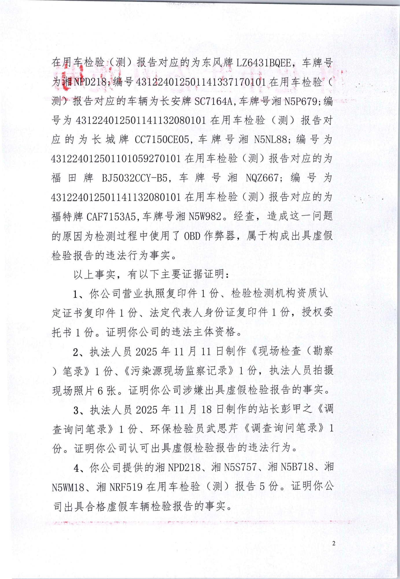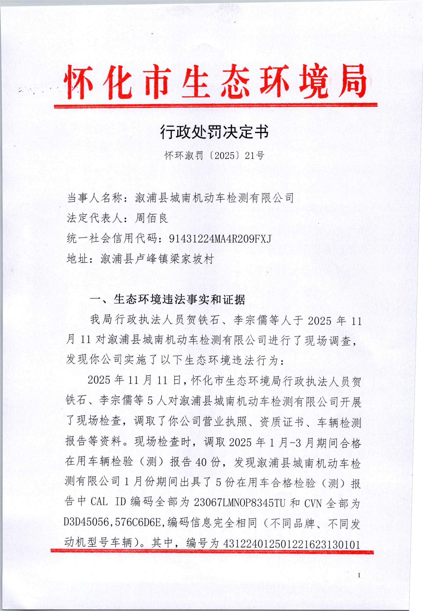 溆浦县城南机动车检测有限公司:违反《中华人民共和国大气污染防治法》行政处罚决定书