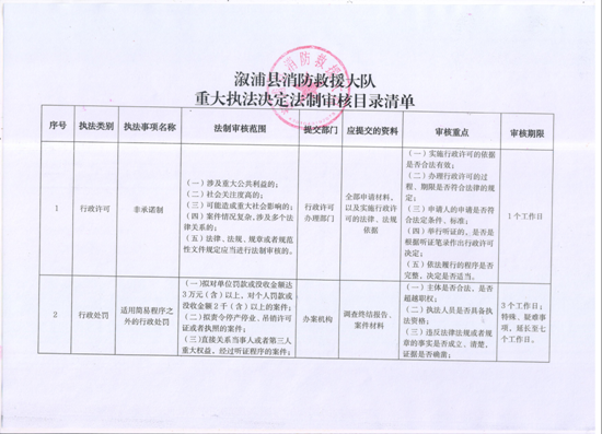 溆浦县消防救援大队重大执法决定法制审核目录清单