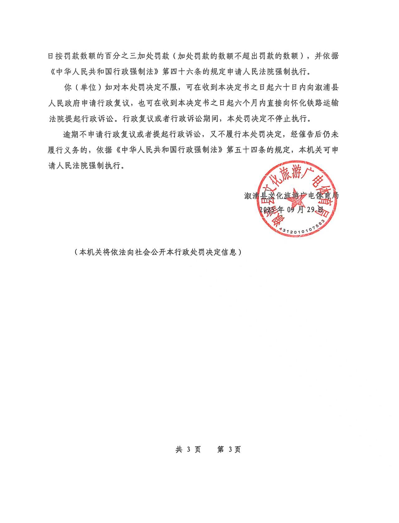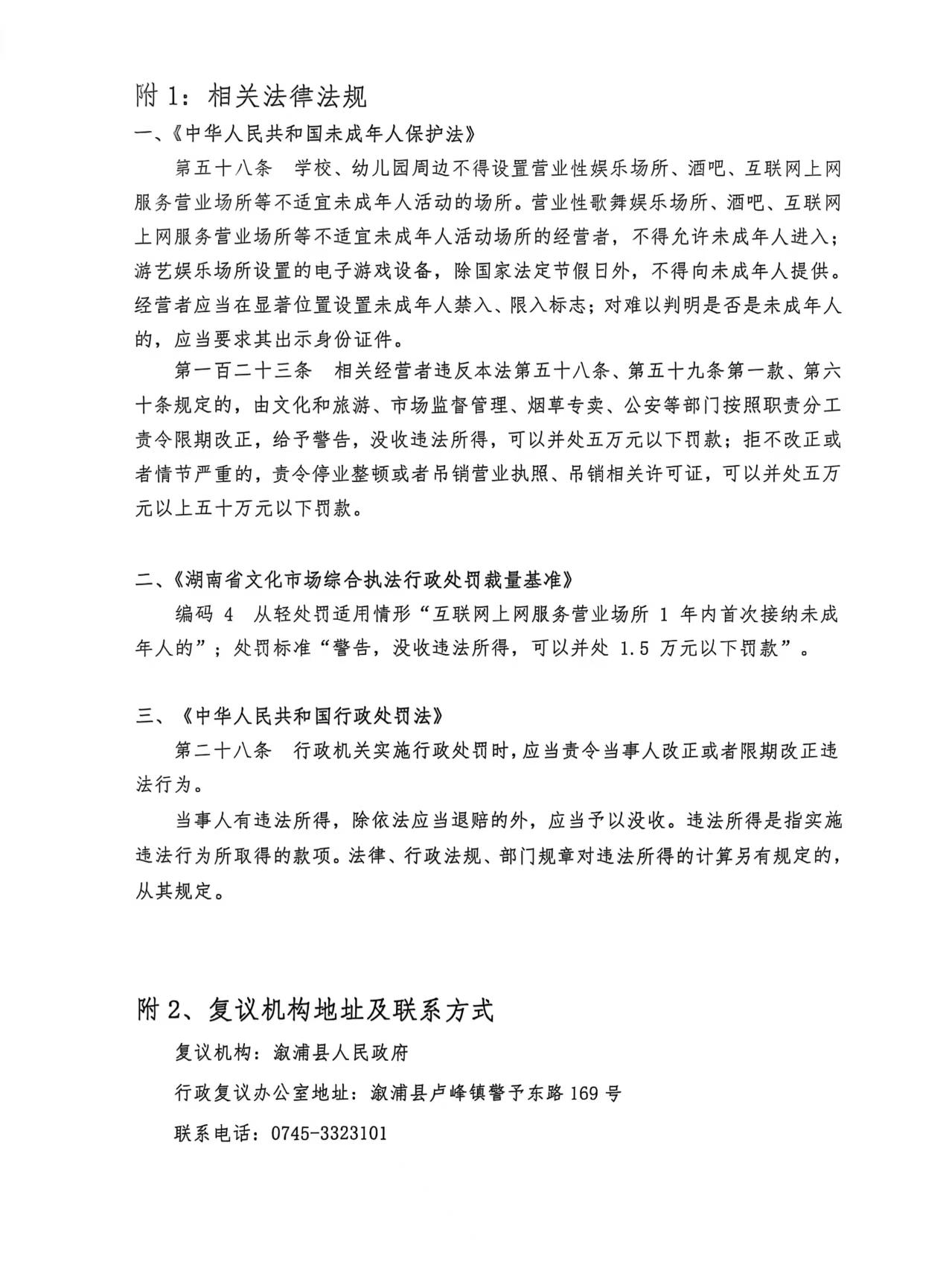 行政处罚决定书 -----溆浦县北极星电竞馆