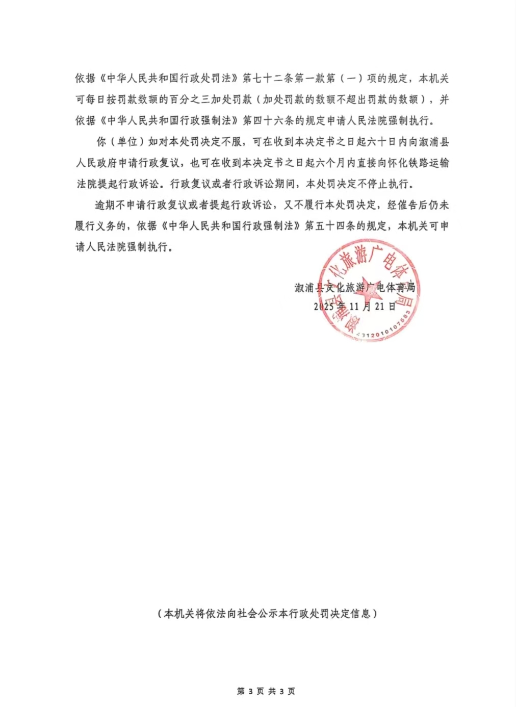 行政处罚决定书--溆浦县龙谭嘉悦大酒店(钟凌润)(湘怀溆)文综罚字 〔2025〕F-11号