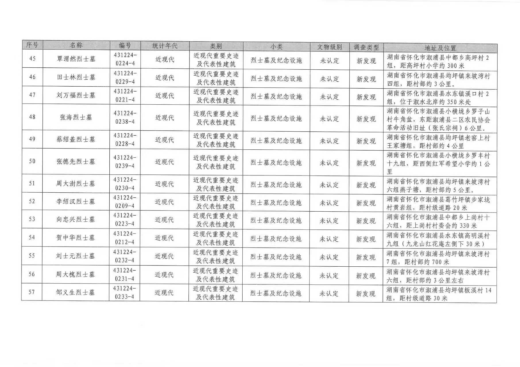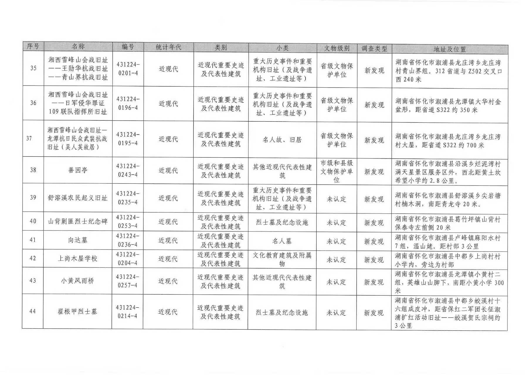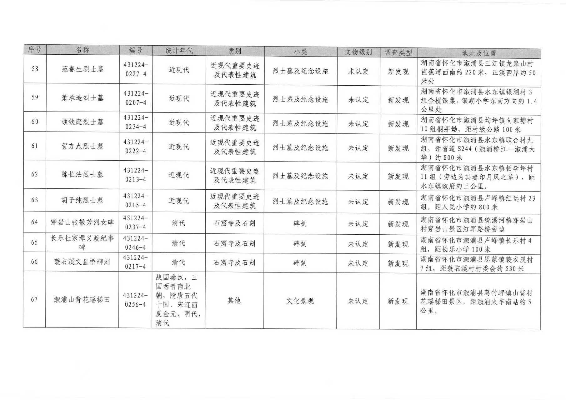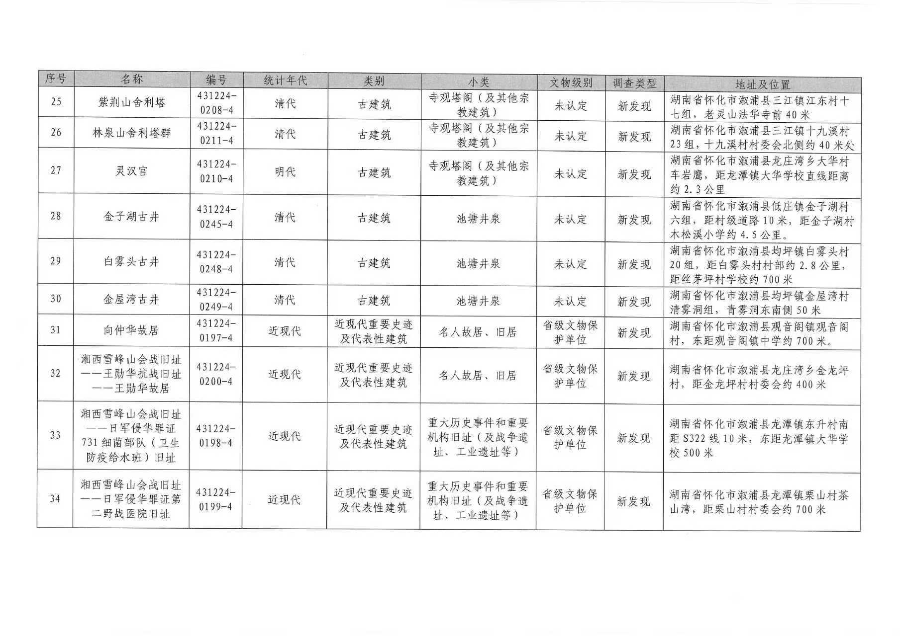 关于溆浦县第四次全国文物普查工作新发现文物点进行公示