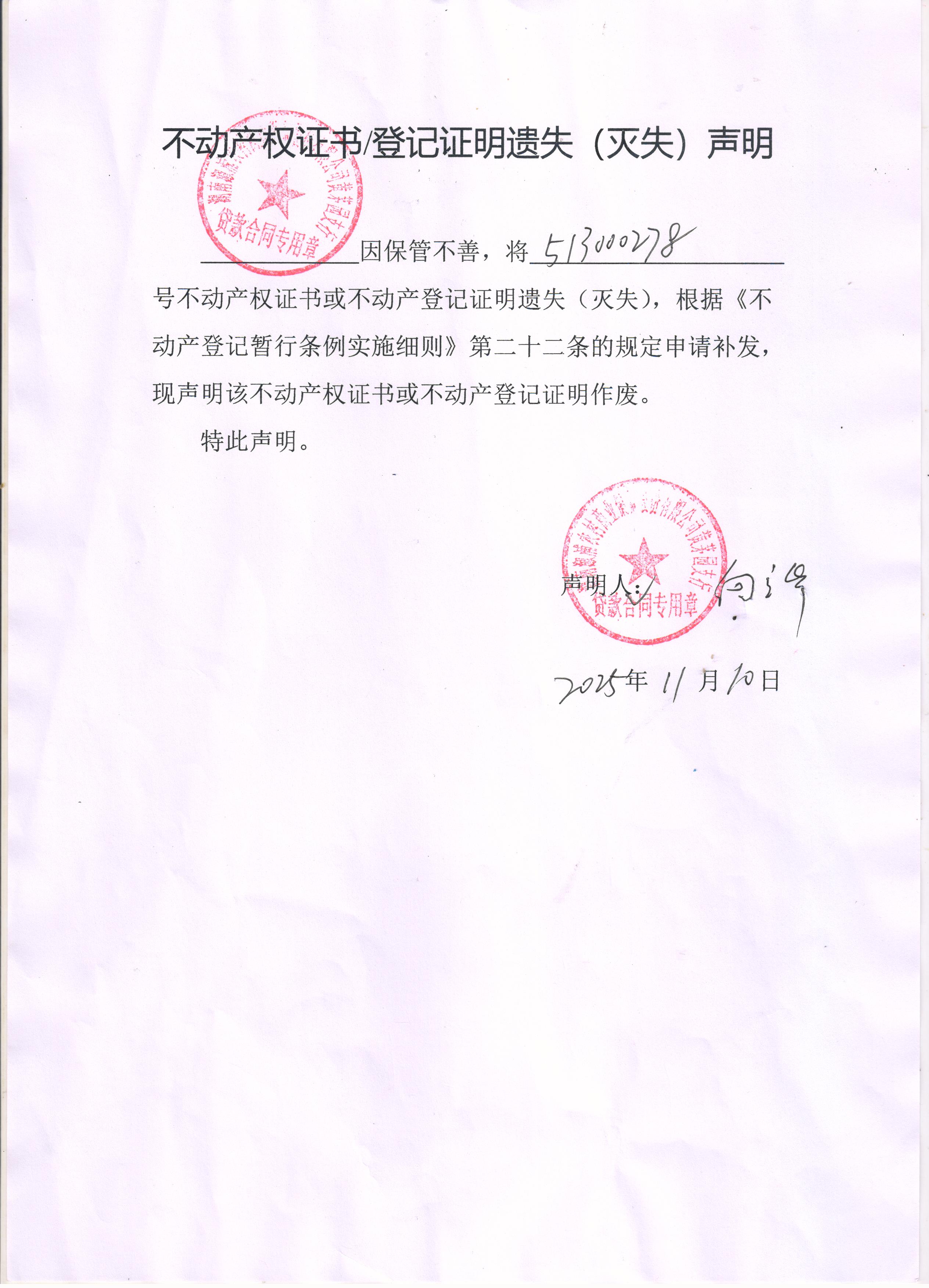 关于湖南溆浦农村商业银行股份有限公司黄茅园支行不动产权证书/登记证明遗失(灭失)声明