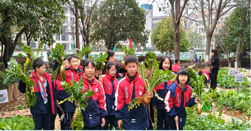 中午时分,阳光正好,香草园内一片生机盎然。师生们齐聚田埂,拉开了劳动实践的序幕。“轻拔萝卜防损伤,齐根剪葱保再生”,老师一边示范一边讲解可持续采摘的技巧。随后,学生们分组进入菜地,化身“小农人”。他们小心翼翼地拨开泥土,拔出一个个鲜嫩的萝卜;手持剪刀,齐根剪下翠绿的香葱,留下葱根静待下一轮生长。清洗区里,沾着泥土的蔬果在师生协作下变得干干净净,装满了竹篮。大家在实践中体会着“从田间到餐桌”的来之不易,现场评选出的“采摘小能手”更是笑逐颜开。