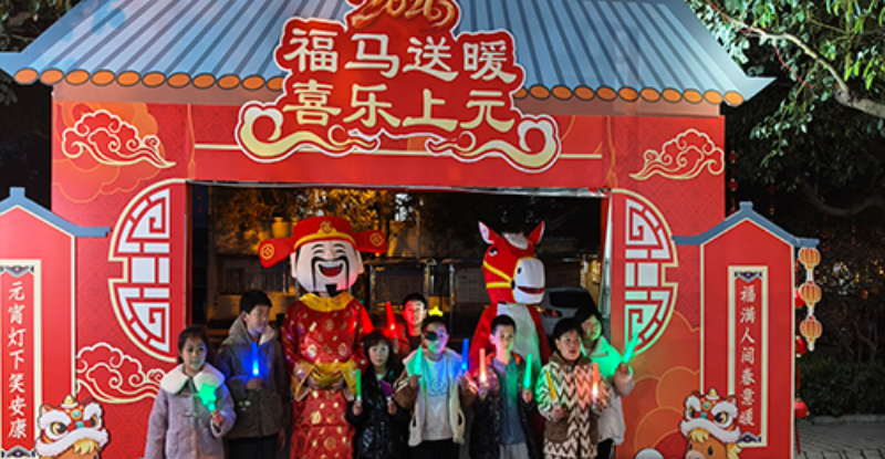 傍晚19时,活动在热闹喜庆的锣鼓音乐声中拉开帷幕。由工作人员装扮的“福马人偶”与“福字财神”憨态可掬地带领巡游队伍漫步院内,他们一边向在场的老人和孩子们发放寓意吉祥的元宵福袋,一边送上节日的问候。欢快的旋律瞬间点燃了现场气氛,长者们的脸上洋溢起幸福的笑容,孩子们则好奇地追逐着“福马”,院内处处洋溢着浓浓的节日温情。