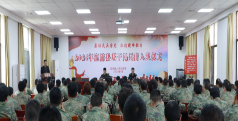 为夯实民兵建设根基,锤炼打赢制胜能力,溆浦县组织开展2026年度基干民兵出入队仪式。县委常委、县人武部上校部长黄永忠,县人武部政委黄河辉出席活动。