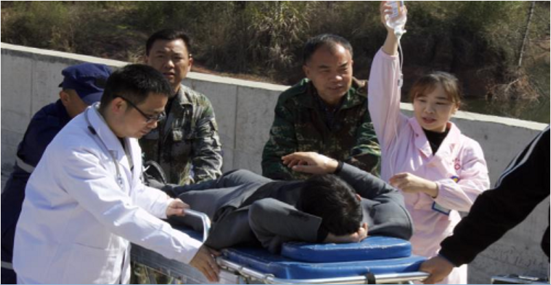 医疗救护组进行伤员快速转移