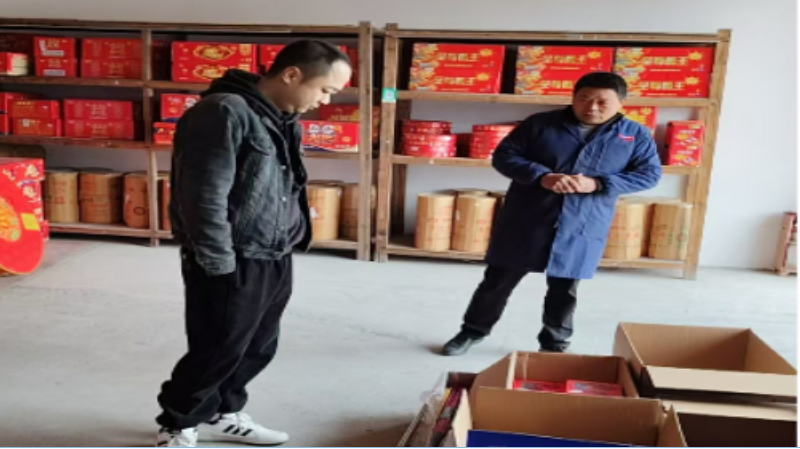督查干部采取逐店走访、逐项核查,重点查看烟花爆竹经营门店的经营资质、进货渠道、储存规范、消防设施、安全警示等关键环节,严查“下店上宅”、超量储存、店外摆放等违规行为,现场指出存在的安全隐患,当场下达整改通知书,明确整改时限与要求,实行清单化管理、闭环式整改。对违规储存、无证经营、占道销售等行为,依法依规严肃处置,坚决把风险隐患消除在萌芽状态。在排查整治的同时,检查组同步向经营户张贴“五个严禁、三个务必”警示标语,面对面解读“五个严禁、三个务必”核心要求,讲解烟花爆竹安全燃放、储存常识及相关法律法规,实现宣传全覆盖、无死角。