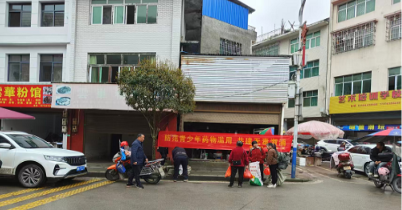 3月23日,正值葛竹坪镇赶集日,该镇禁毒办、司法所、派出所及禁毒志愿者联合在集镇主干道开展禁毒宣传活动。活动现场,一条写有“防范青少年药物滥用,共建无毒溆浦”的红色横幅格外醒目,工作人员通过拉横幅、发放宣传手册、张贴宣传海报等方式,向赶集群众普及禁毒知识。