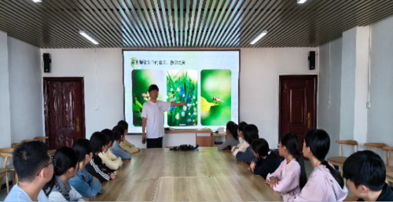 活动伊始,指导老师刘垒通过大屏幕向同学们展示了一组经典的春日摄影作品,并播放了精心剪辑的自然风光短片。春水初生、春林初盛、百花争艳的画面让孩子们目不转睛,现场不时发出阵阵惊叹。这一“赏”环节迅速点燃了孩子们的创作热情,让他们对“春天可以拍什么、怎么拍”有了直观感受。