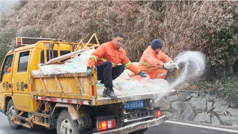 20日清晨6时许,在海拔较高的统溪河镇丫吉坳路段,巡逻民警发现路面出现薄冰,迅速设置警示标志,同步开展预防性撒盐作业。在G241线K2430-K2433黄茅园镇分水界结冰路段,开展撒盐作业,出动人员10余人次,车辆2台,撒布工业盐5吨,防滑砂30立方米,及时消除了道路安全隐患。