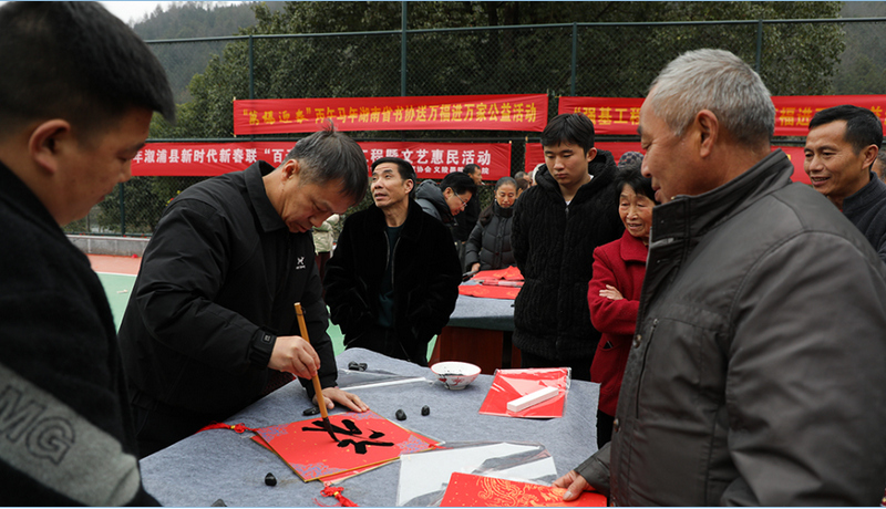 春联送暖,翰墨飘香。2月3日,新时代新春联“百千万”艺术工程走进溆浦县松林村专场文艺惠民活动暨“强基工程”新春特别行动在北斗溪镇松林村热闹开启。省文联党组成员、副主席、省书协副主席倪文华,省委老干部局副局长杨敏,省文联副主席、省书协副主席、秘书长胡紫桂,市文联主席江月卫,县委书记郑湘,县委常委、县委办主任杨嵩岳等出席活动,与全体村民一起感受中国传统文化的魅力,喜迎新春佳节的到来。