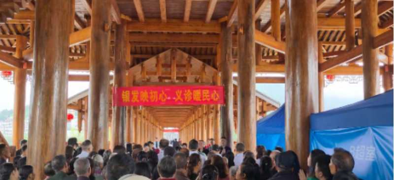 4月16日,正值思蒙镇赶集日,风雨桥上人头攒动,一场以“银发映初心 义诊暖民心”为主题的义诊活动在这里温情开展。本次活动由市政府办机关退休干部党支部联合湖南医药学院总医院共同组织,旨在将优质医疗资源送到乡村振兴第一线,切实服务基层群众。