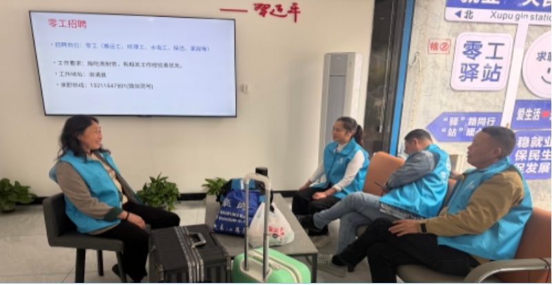 务工人员在零工驿站集合